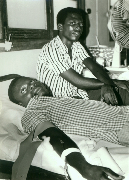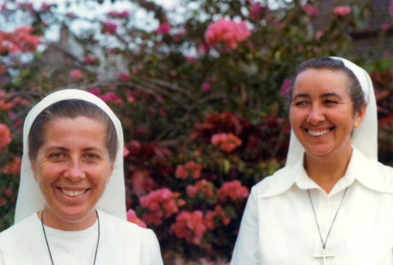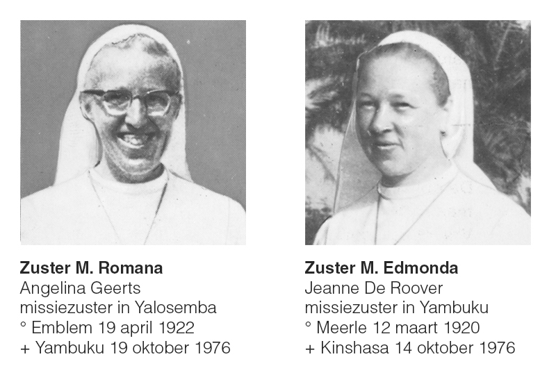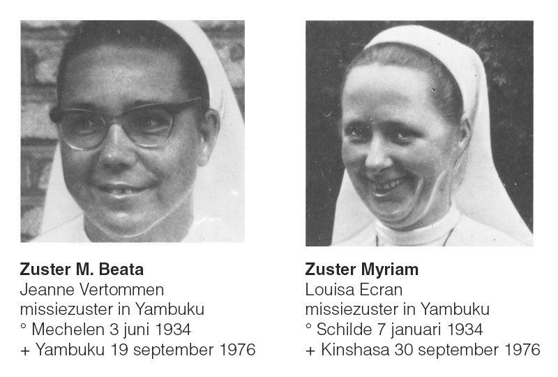 Sisters Genoveva (left) and Marcella of the Holy Heart of Maria of 's-Gravenwezel keep up people’s courage. Sister Geno is – among many other things - the 'announcer' of Guido's TV station. Sister Marcella is the nun who noted all epidemiological information before the commission members arrived in Yambuku, Zaïre 1976.