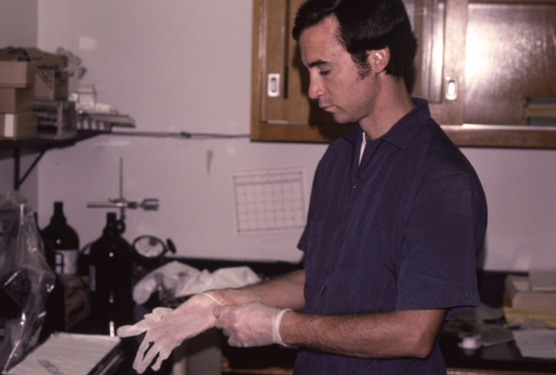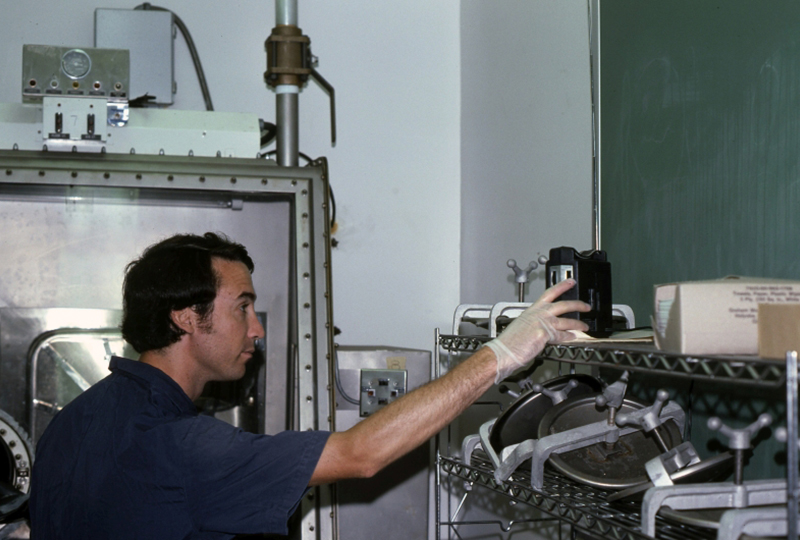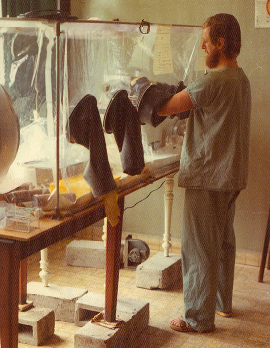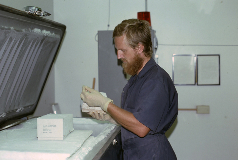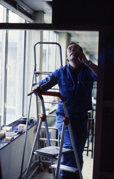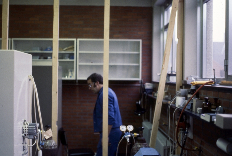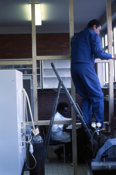ITM staff member Walter Gentjens. Construction and commissioning of the maximum security laboratory. Antwerp, 1977.