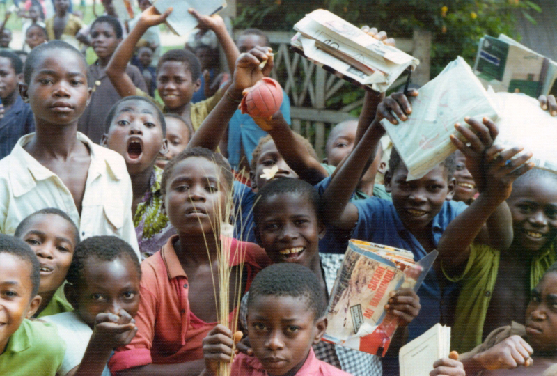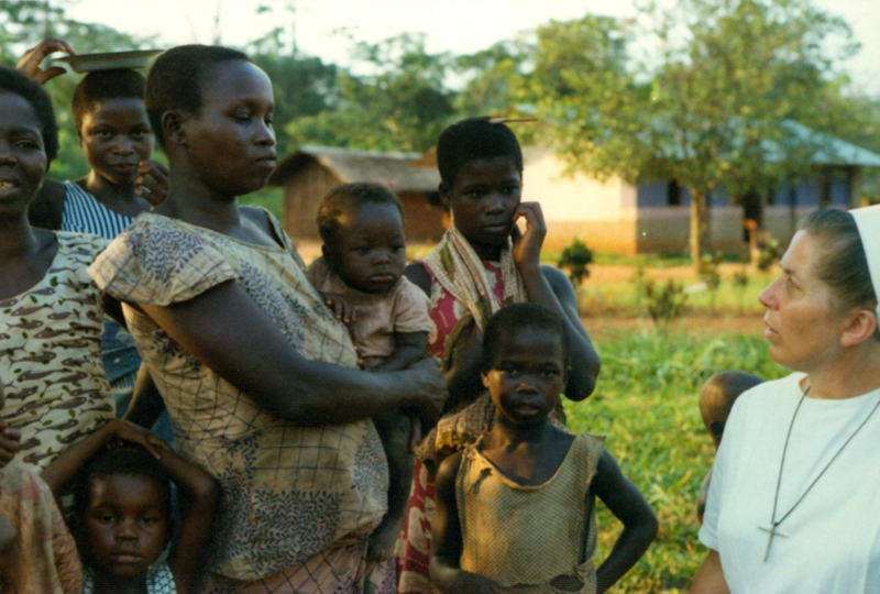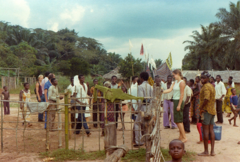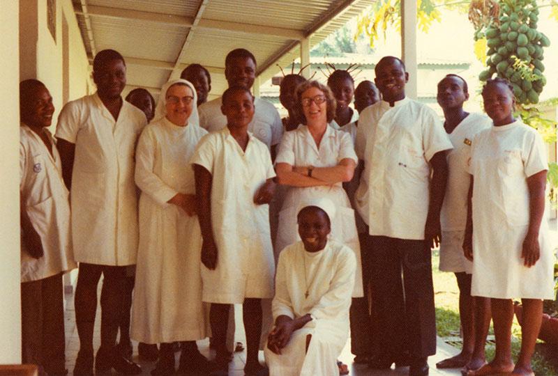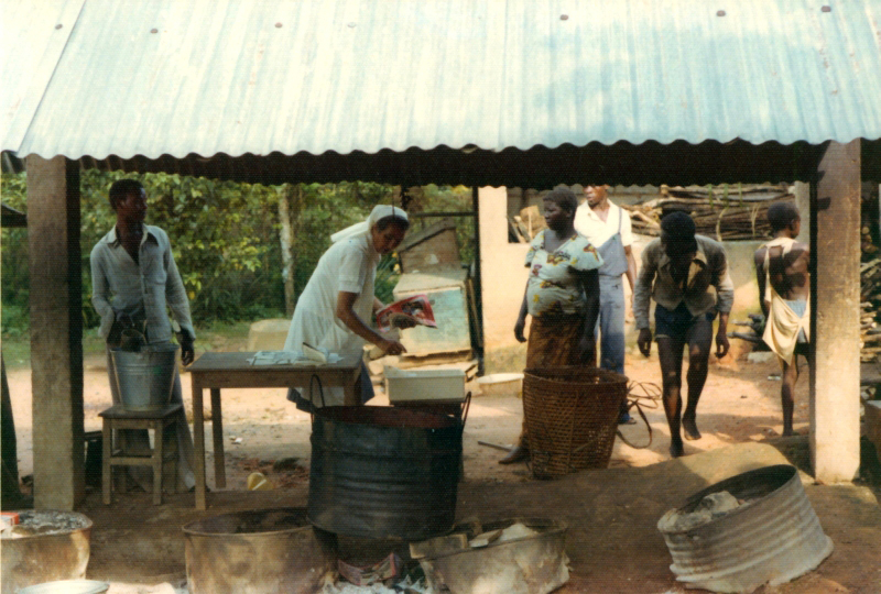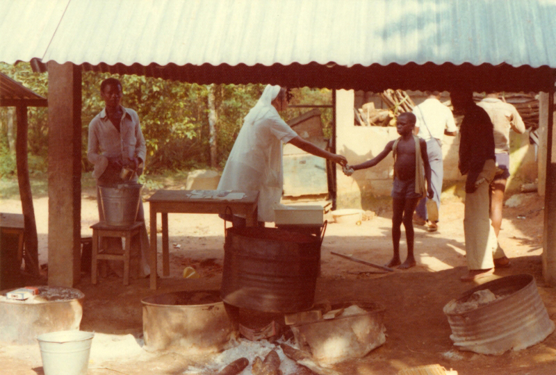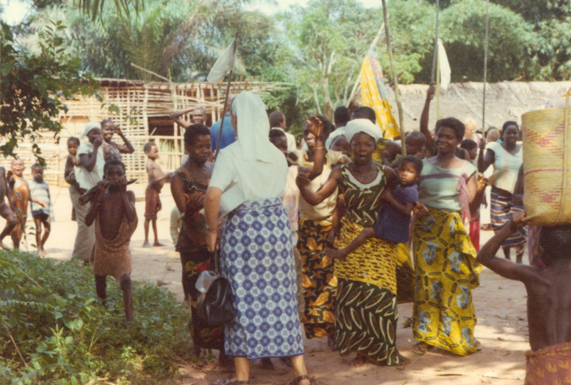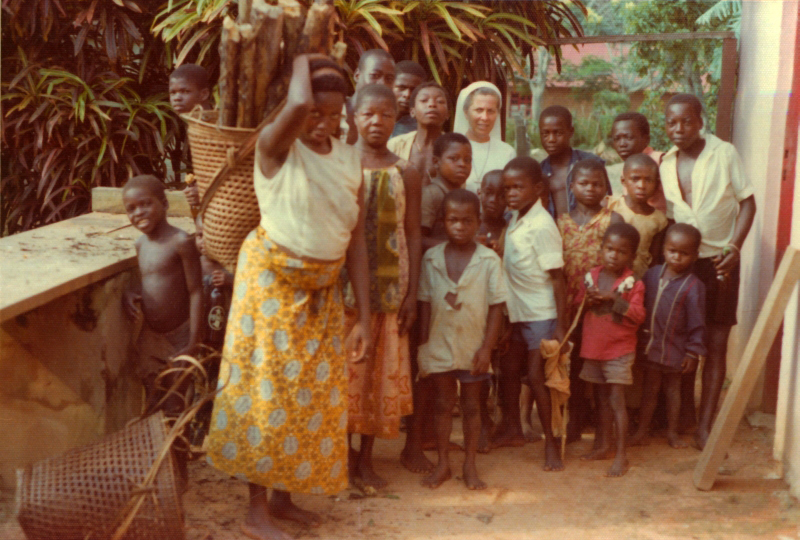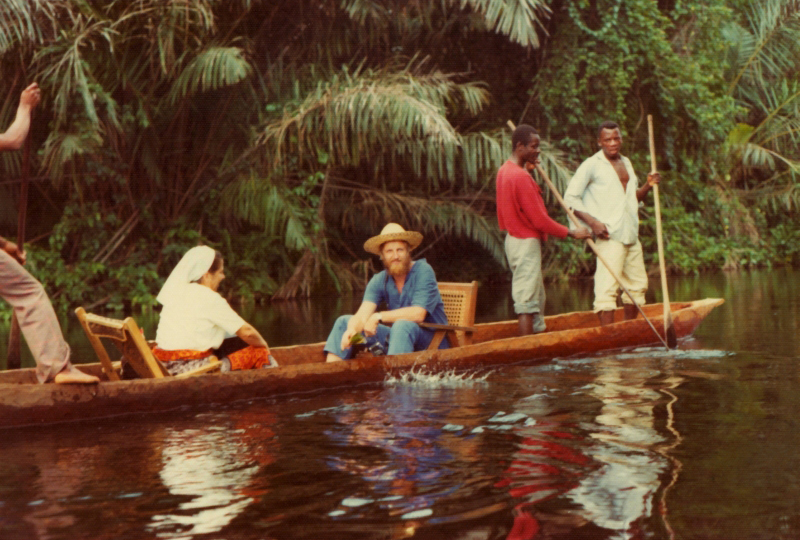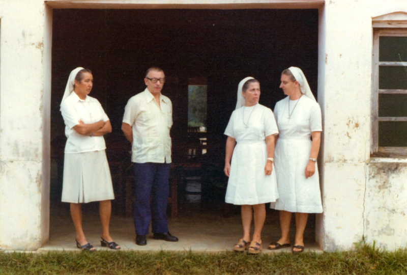 From left to right: Sister Marcella, Stefaan Pattyn, Sister Geno, Sister Mariette. Yambuku, Zaïre 1976.