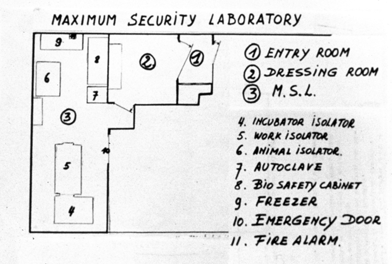 Link with the outside world. Construction and commissioning of the maximum security laboratory. Antwerp, 1977.
