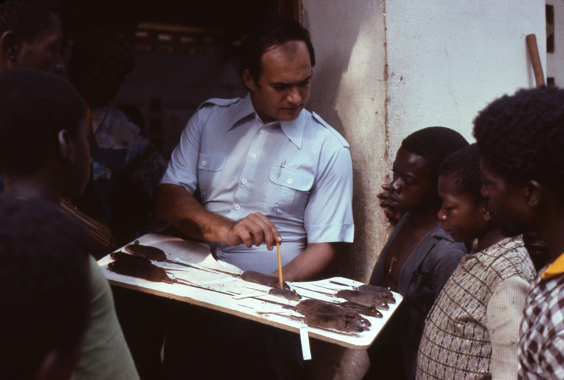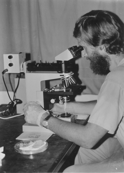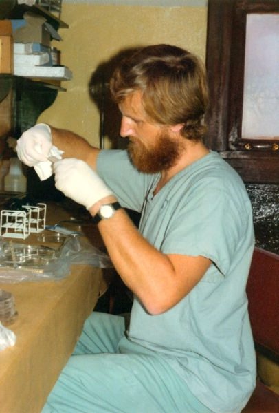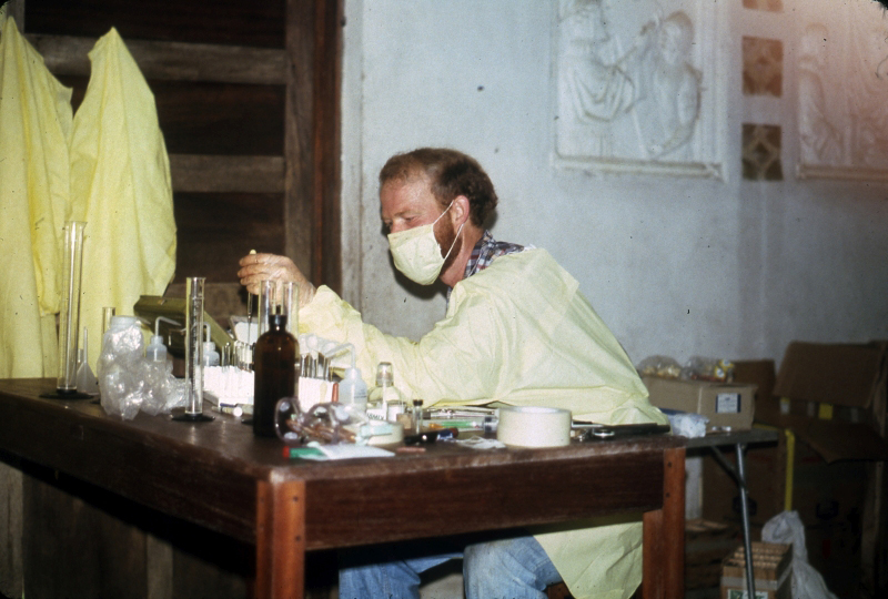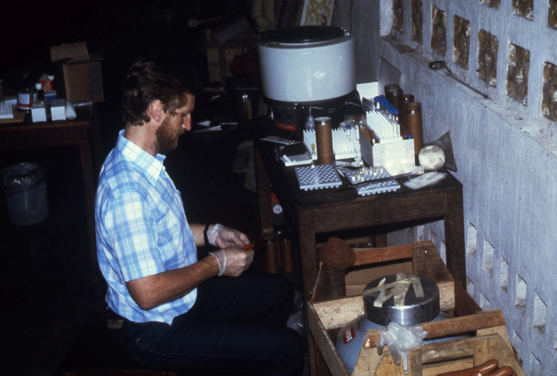 Expedition coordinator Dave Heymann of the CDC. Ebola research among pygmies. South-east Cameroon 14-29 February 1980.
